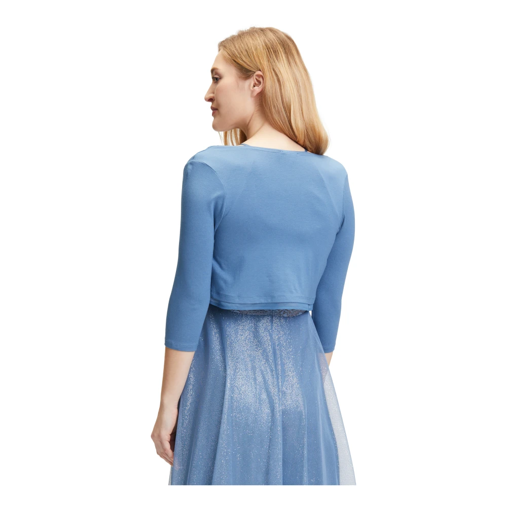 Cocktailjasje van V.M. by Vera Mont. Recht model. Effen design. Opengewerkte voorkant. Ruglengte bij maat 36: 34 cm