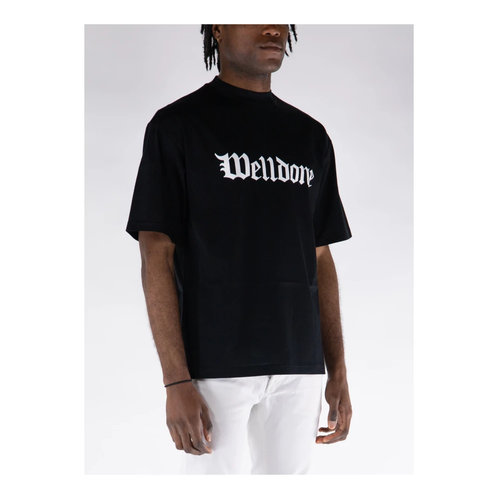 Upgrade je casual stijl met deze We 11Done T-shirt voor heren. Gemaakt van comfortabel katoenen stof, deze zwarte tee heeft een modern design. Model is 186 cm lang en draagt maat M.