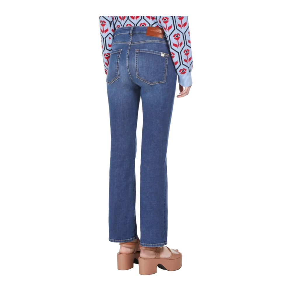 Max Mara Weekend boot-cut jeans voor vrouwen. Super comfortabele denim met ultra-slanke silhouet, licht uitlopende pijp en cropped enkel lengte. Voorzien van iconische details zoals metalen klinknagels en een klein vlinderlogo op de rechter achterzak. Voor sluiting met bedekte rits en knoop. Stof: 98% katoen, 2% elastaan