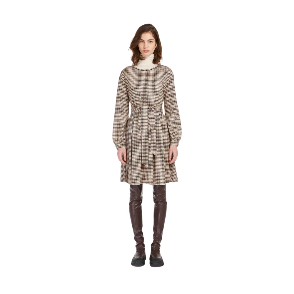 Jurk van Weekend Max Mara. Mix van katoen en viscose met stretch. Getailleerd model. Knielang. Model 'VETTA. Tailleriem. Geribde ronde hals. Ruglengte bij maat S: 95 cm. Borstomvang bij maat S: 42 cm. Mouwlengte bij maat S: 56 cm