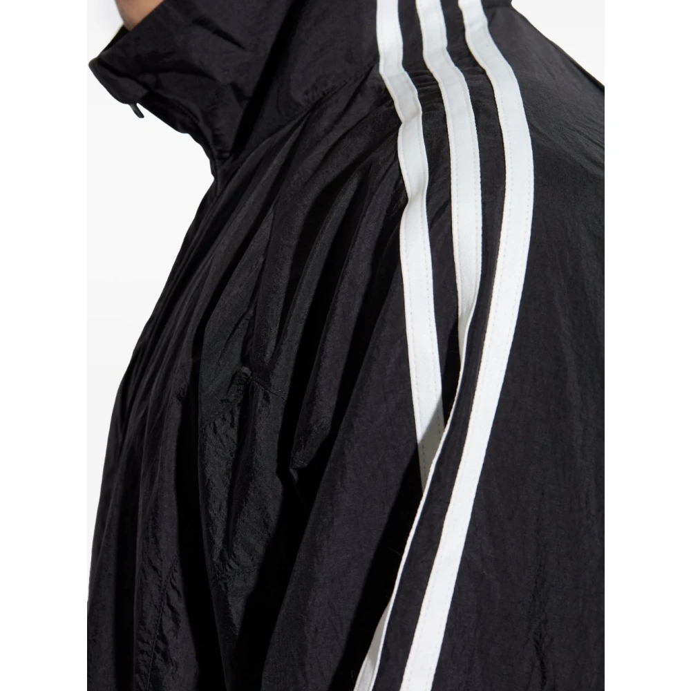 Upgrade je stijl met deze Y-3 zwarte lichte jas met tweewegritssluiting aan de voorkant, twee zijzakken, hoge kraag en lange mouwen. Dit kledingstuk valt normaal qua maat. Model is 1, 84 m / 6ft 1in en draagt maat M.