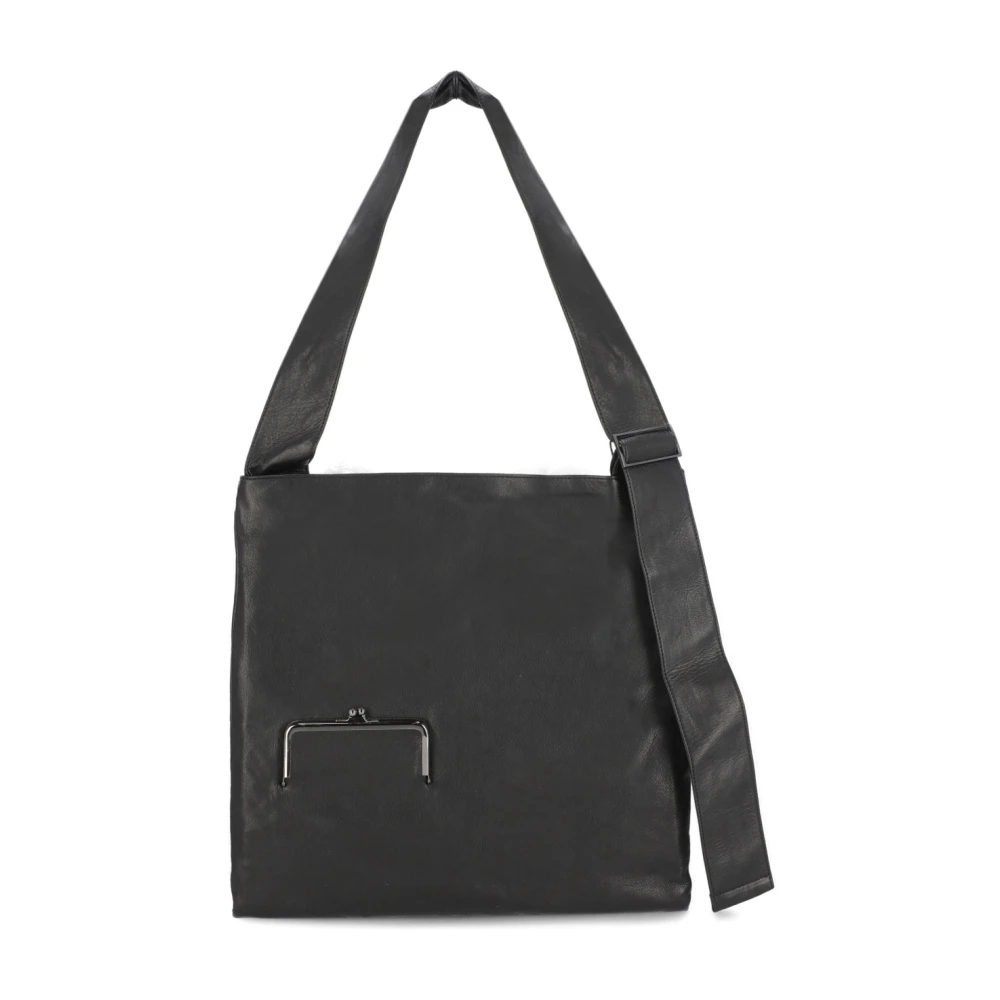 Upgrade je stijl met deze zwarte Discord Yohji Yamamoto leren schoudertas voor vrouwen. Voorzien van een hoofdcompartiment met magnetische sluiting en een schouderband met een drop van 35 cm. Afmetingen: H45 x L47 x D2 cm.
