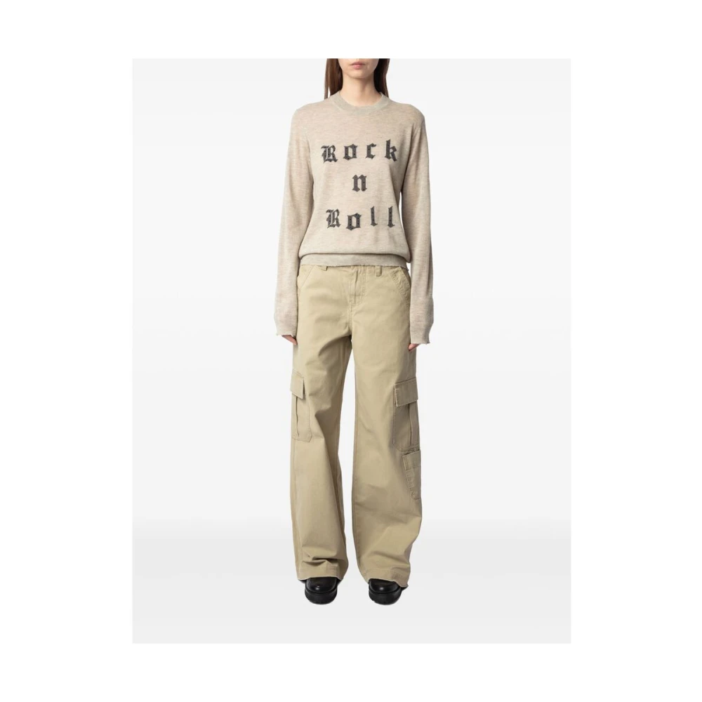 Upgrade je stijl met deze Zadig & Voltaire lichtbeige crew neck knitwear met slogan print en lange mouwen, perfect voor de modebewuste vrouw.