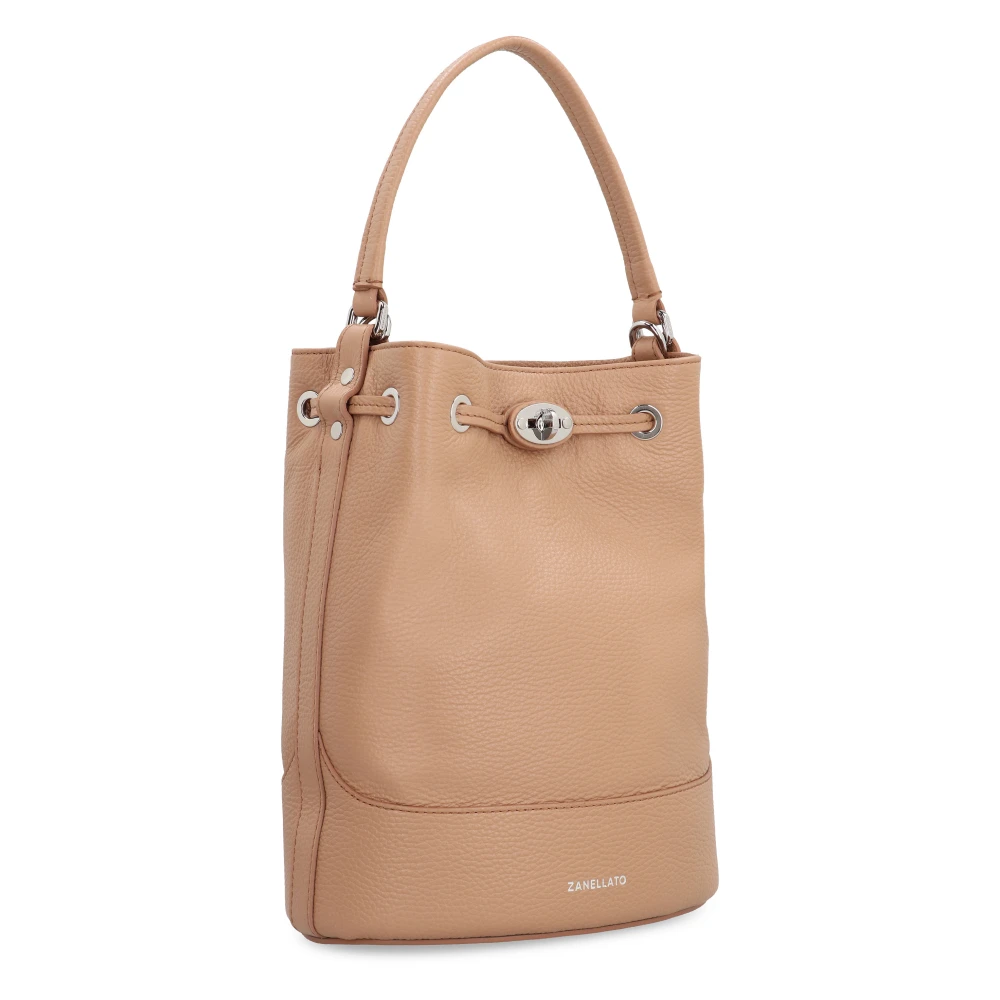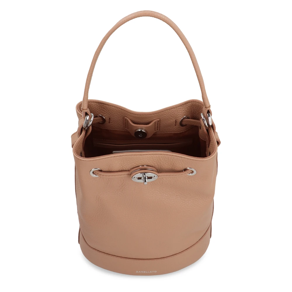 Upgrade je stijl met deze Zanellato bucket bag gemaakt van geperst kalfsleer. Ontworpen voor de moderne vrouw, het heeft een leren handvat, magnetische sluiting en meerdere interne zakken. Het zilverkleurige metalen hardware voegt een vleugje verfijning toe. Afmetingen: B22 x H28 x D14 cm. Riemlengte: 130 cm. 100% kalfsleer.