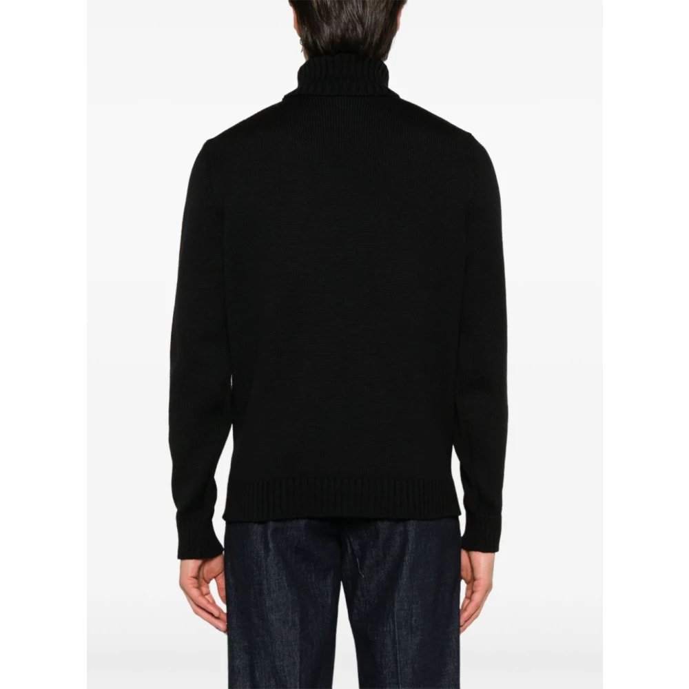 Upgrade je wintergarderobe met deze Zanone zwarte virgin wool fisherman's knit coltrui. Met lange mouwen en een rechte zoom is dit klassieke stuk perfect voor de moderne man.