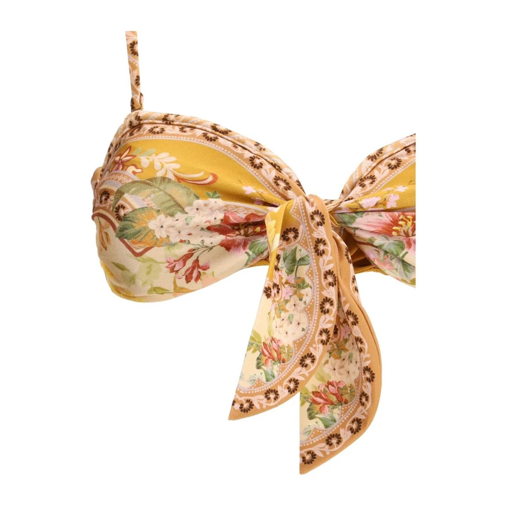 Upgrade je strandlook met deze bikini set van Zimmermann. Voorzien van verstelbare en afneembare bandjes, geknoopt detail aan de voorkant, verstelbare onderkant met zijbandjes, haak- en oogsluiting aan de achterkant en afneembare voorgevormde cups. Het veelkleurige patroon voegt een speelse touch toe aan je zwemkledingcollectie. Gemaakt van Polyamide. Maat op label: 1