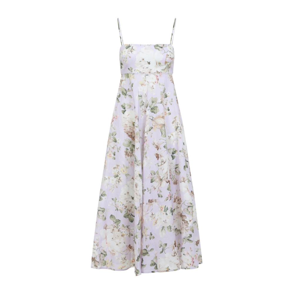 Upgrade je garderobe met deze Zimmermann LIF Lilac Floral Acacia Bandeau Midi Jurk gemaakt van 100% linnen.