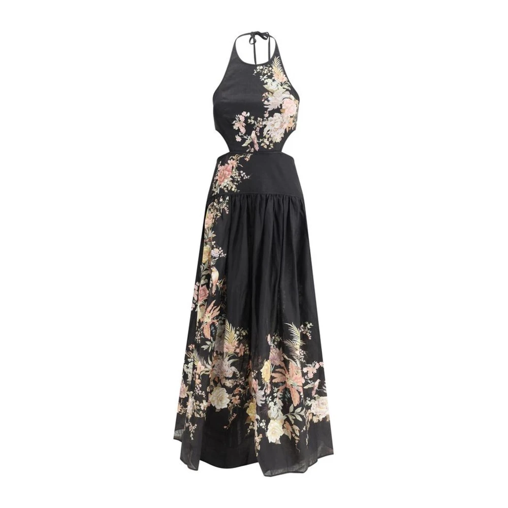 Upgrade je zomergarderobe met deze Zimmermann maxi-jurk. Met een prachtige bloemenprint, halternek en centrale rits verborgen aan de achterkant van de rok, is deze jurk zowel stijlvol als comfortabel. Gemaakt van 100% linnen met versterkte zijnaden en elastische details in het midden aan de achterkant, is het perfect voor elke vrouwelijke modeliefhebber. Model draagt maat 0
