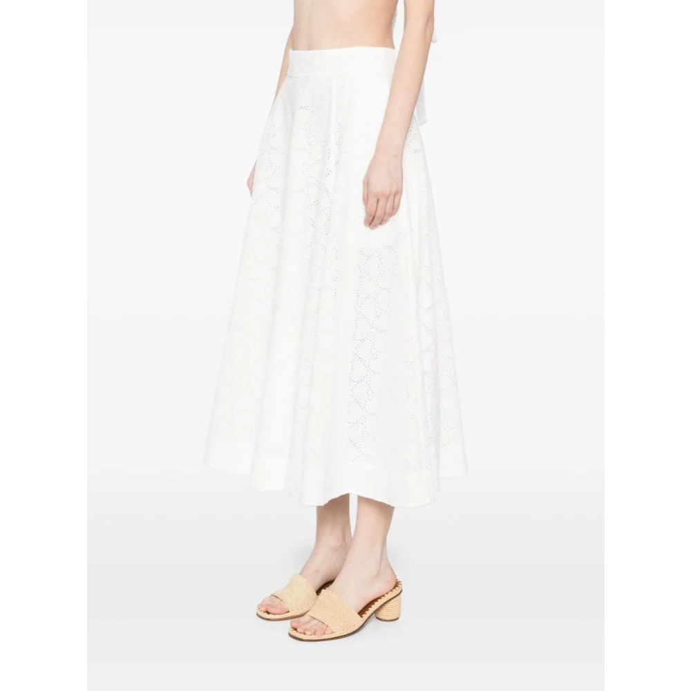 Upgrade je garderobe met deze Zimmermann midi-rok in het wit. Voorzien van een rits aan de achterkant, twee zijdelingse insteekzakken en volledige voering. Dit kledingstuk valt normaal qua maat. Model is 1, 75m lang en draagt maat 1 (Num).